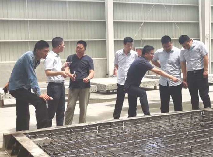 考察团一行实地参观了厂内各类装配式构件、模具和钢筋加工机械,详细了解了装配式建筑的生产流水线后,对装配式构件生产公司进行详细询问,总工何伟志做了详细的解答。考察团在听取了总工何伟志详细介绍的公司的管理模式、企业文化后表示,当前国家正在大力推动装配式产业化,非常感谢河北天山绿创建材公司的无私介绍,希望能有机会与绿创建材公司进行深度的交流与合作。