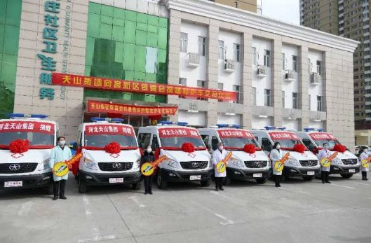 为坚决打赢新型冠状病毒疫情防控战,天山集团第一时间向石家庄市红十字会和石家庄高新区管委会捐赠六辆救护车及现金人民币价值300万元,员工自愿现金捐款28.4942万元,天山集团捐款总额已达328.4942万元及防疫物资。